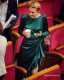 Яко, для выхода в свет Посыльный выбрала длинное атласное капот изумрудного оттенка, которое выделялось разрезом в области ног. Специфичный образ депутат завершила аккуратной прической в виде двух колосков, сережками и бордовым рюкзаком.